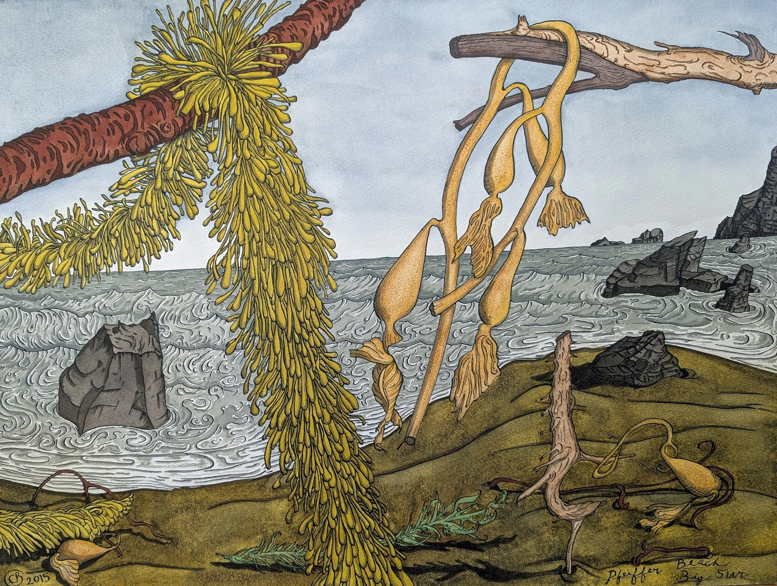 Moonstone Beach 2015 Ink on Paper 16” x 12”