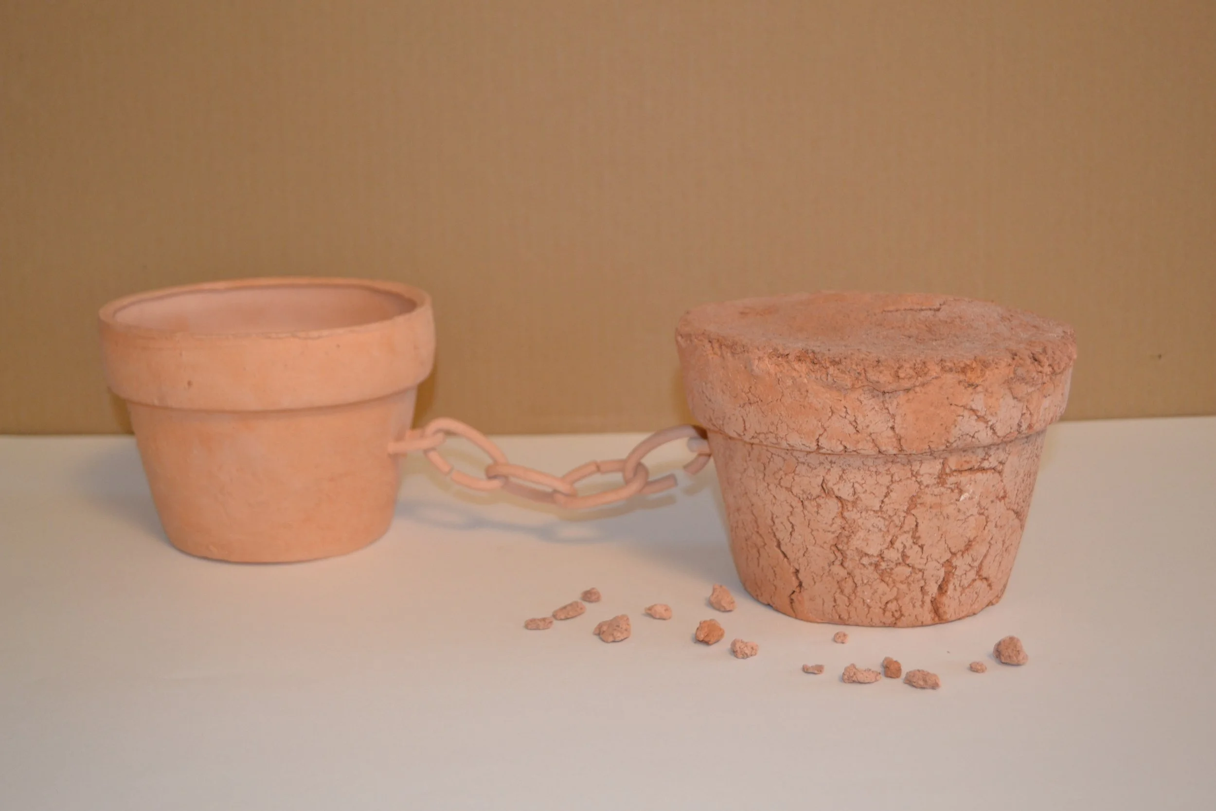 Breakthrough - Underlying Structure Meets Domestic Decoration 2024 Ceramic and Painted Paper 11” x 11” x 4”